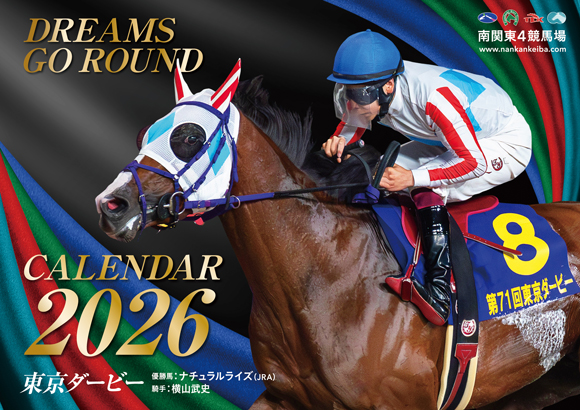 大迫力のゴールシーンを集めた「2026年南関東4競馬場カレンダー」を抽選で50,000名様にプレゼントいたします。ぜひご応募ください。